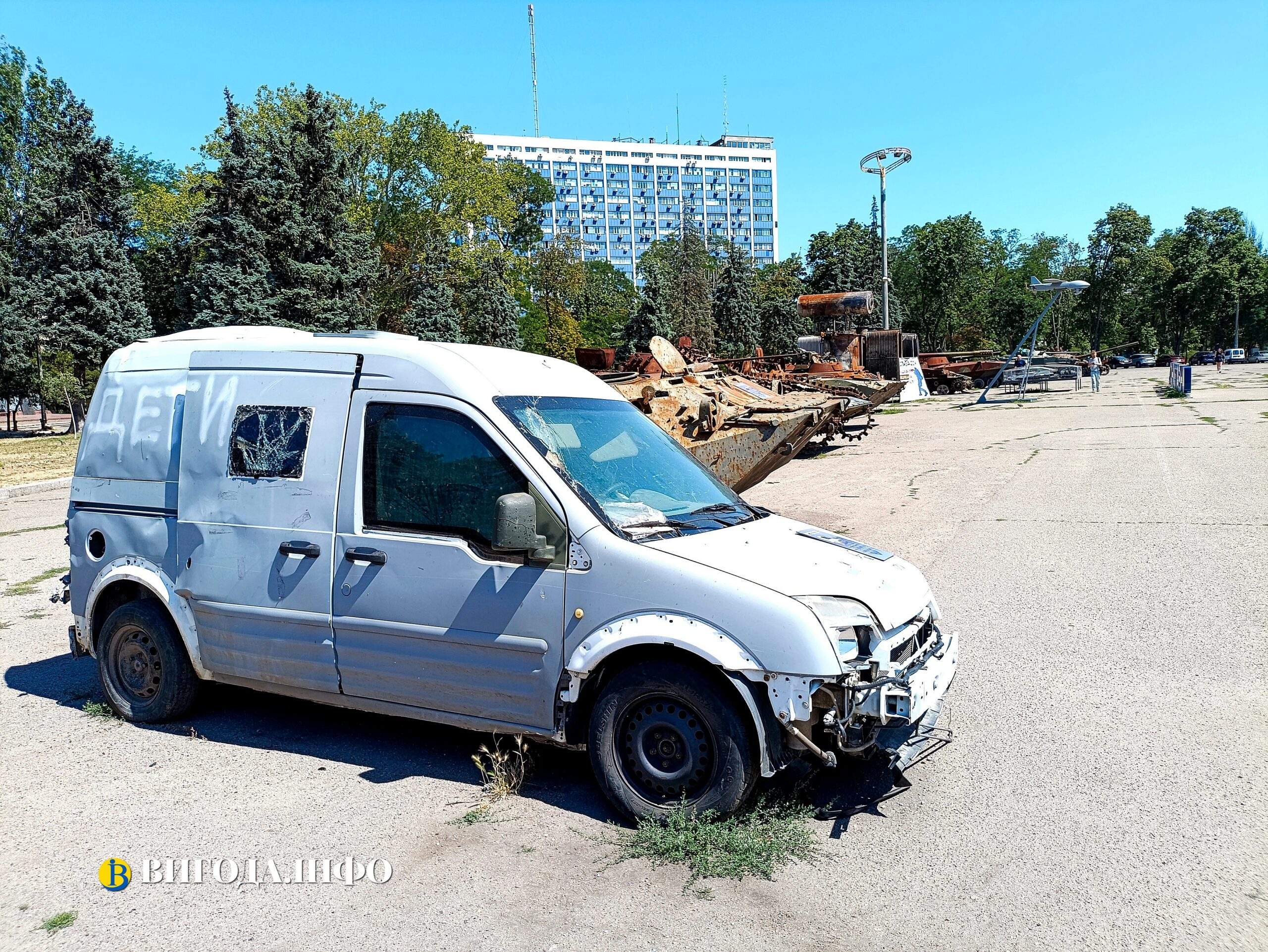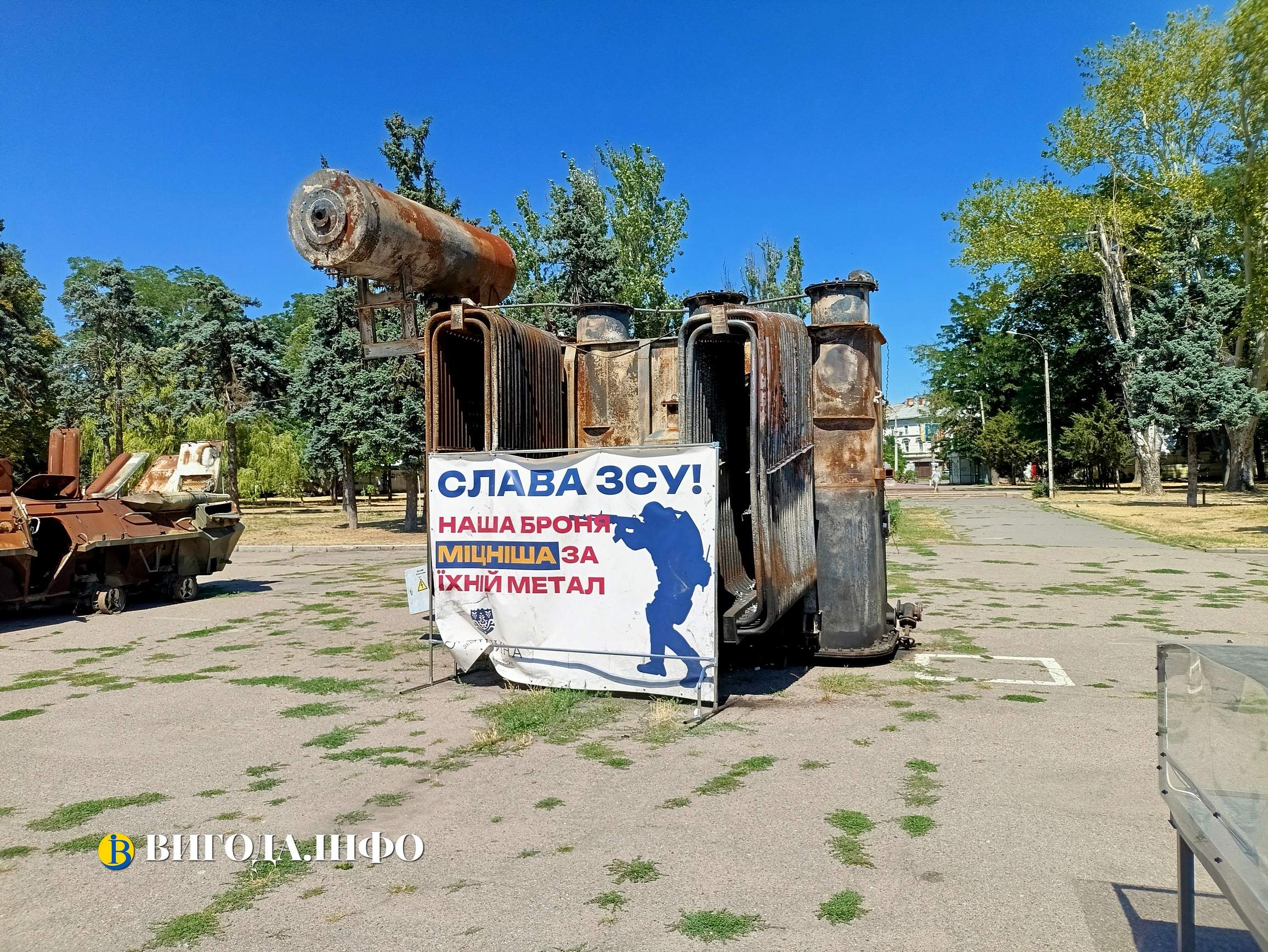 Також серед експонатів присутня атакована FPV-дроном автівка з дітьми та знищена росією трансформаторна еклектропідстанція.