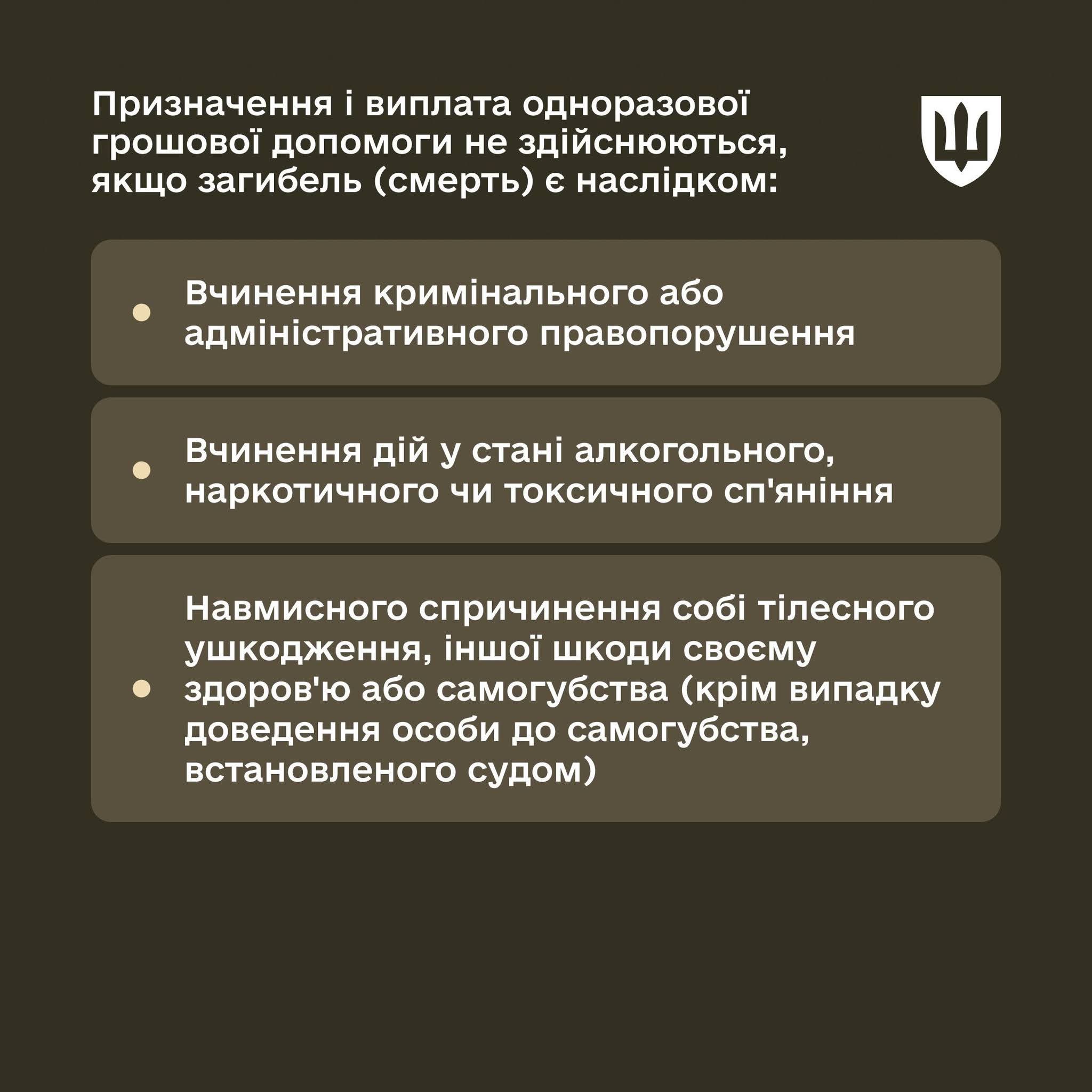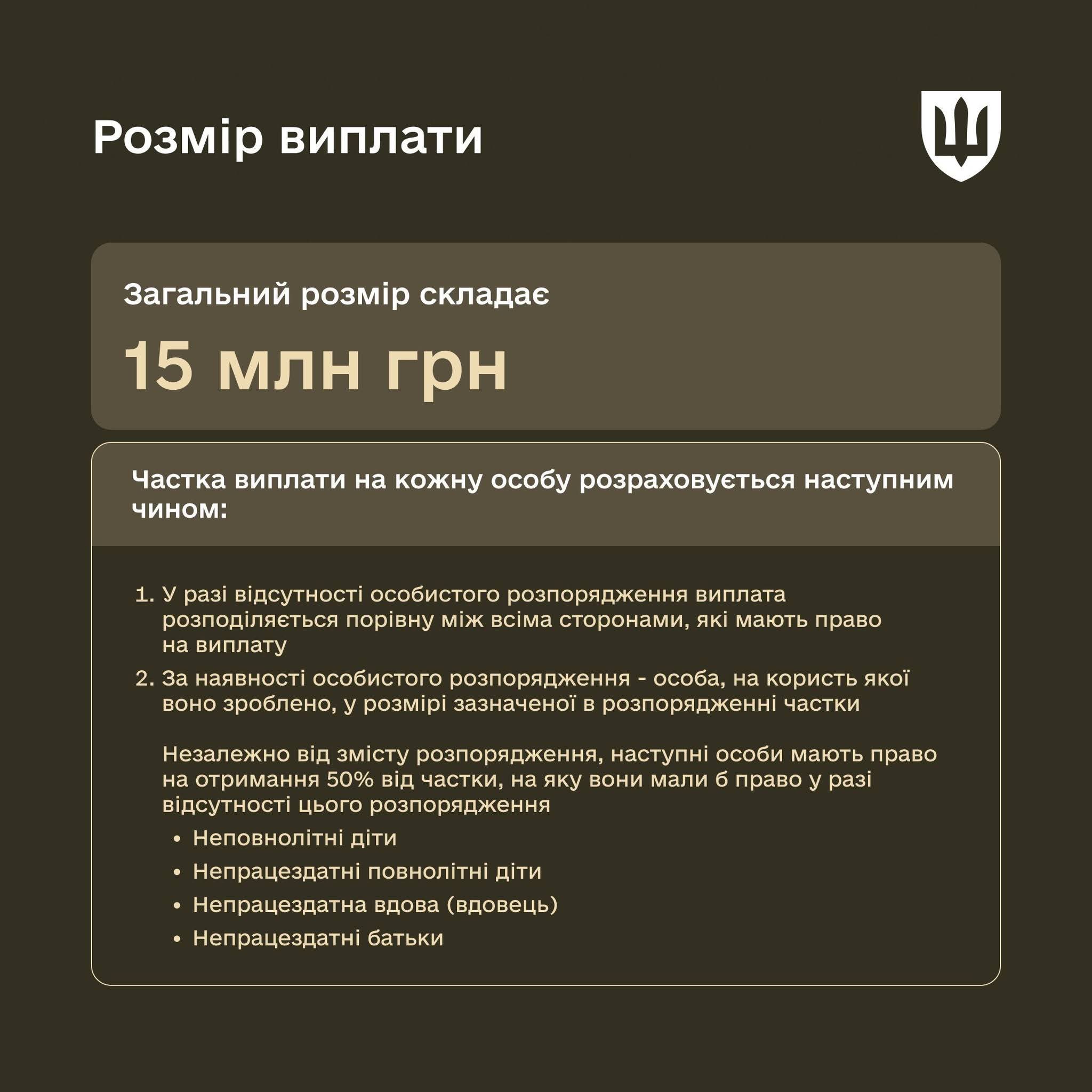 Виплата можлива також, якщо смерть настала протягом року після поранення, отриманого під час захисту України.