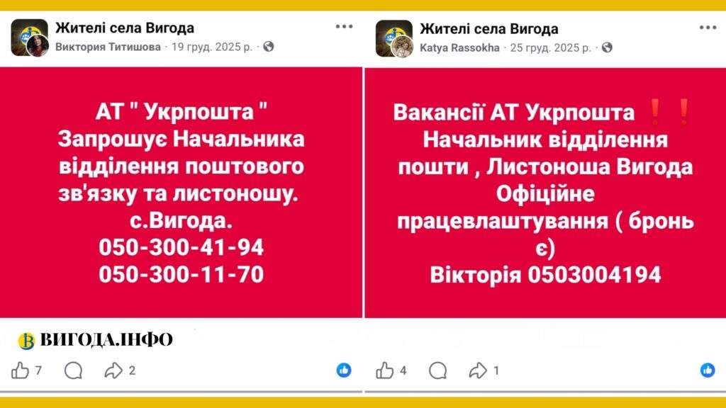 Подібна ситуація вже була в листопаді 2024 року. Тоді Вигода.Інфо повідомляло, що пересувне відділення Укрпошти запроваджували також через відкриті вакансії начальника та листоноші.